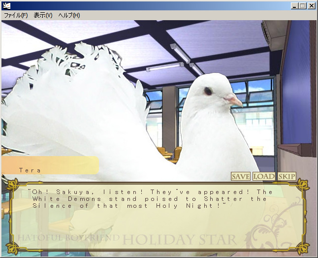 More of this! Mere months after the release of the original Hatoful Boyfriend, Moa released Hatoful Boyfriend: Holiday Star at the seasonally appropriate end of December 2011. Technically not a sequel, Holiday Star (henceforth HoliStar for brevity’s sake) is labelled under the distinctly Japanese category of fandisk. That said, HoliStar acts as close to a sequel as it can get; foregoing the otome structure of the original game, it presents a series of linear episodes set in a timeline where the Bad Boys’ Love route didn’t happen.