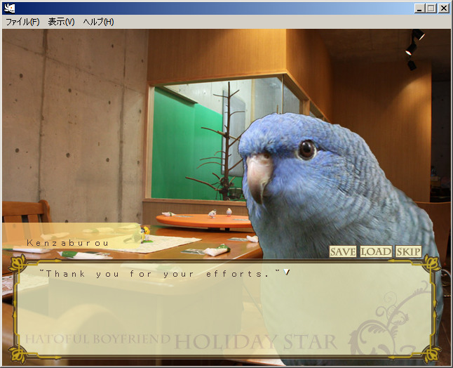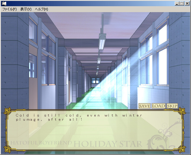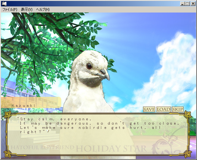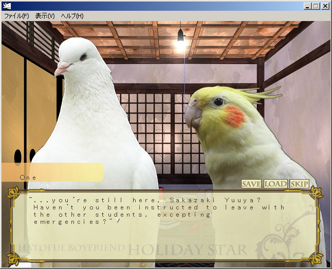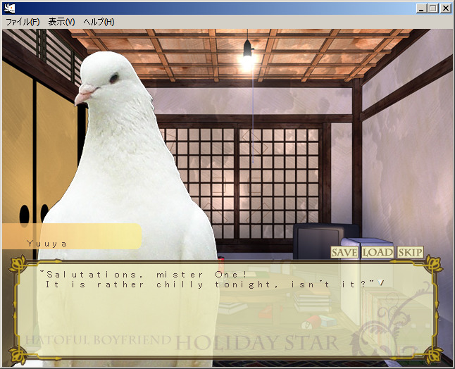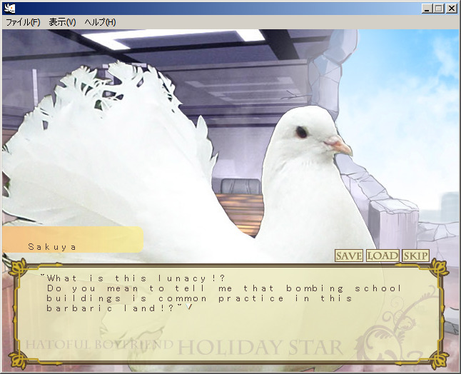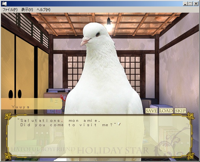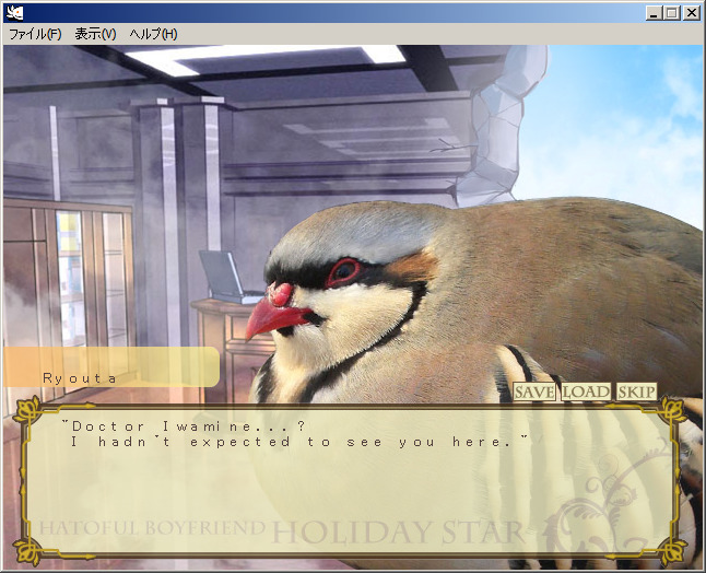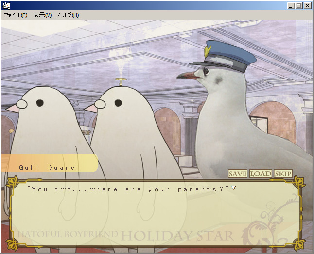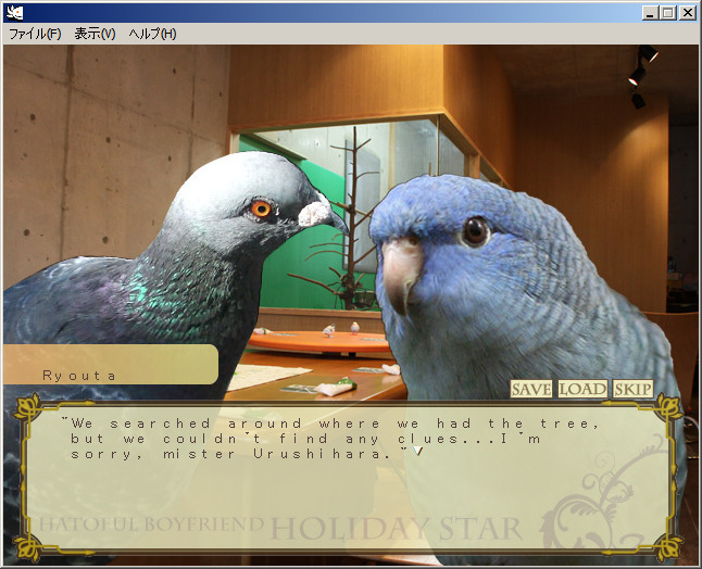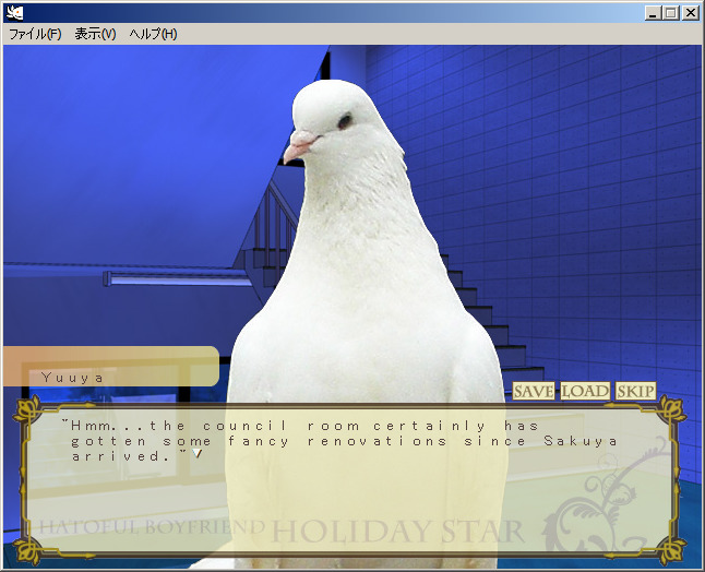 Previously on Hatoful Boyfriend: Holiday Star, we met a pair of odd… kids? Other than that, we didn’t learn much about the Christmas Thieves at all. Perhaps we’ll find out a little more. We open on the Torimi Cafe, where the protagonist and Ryouta are debriefing Kenzaburou on their search.